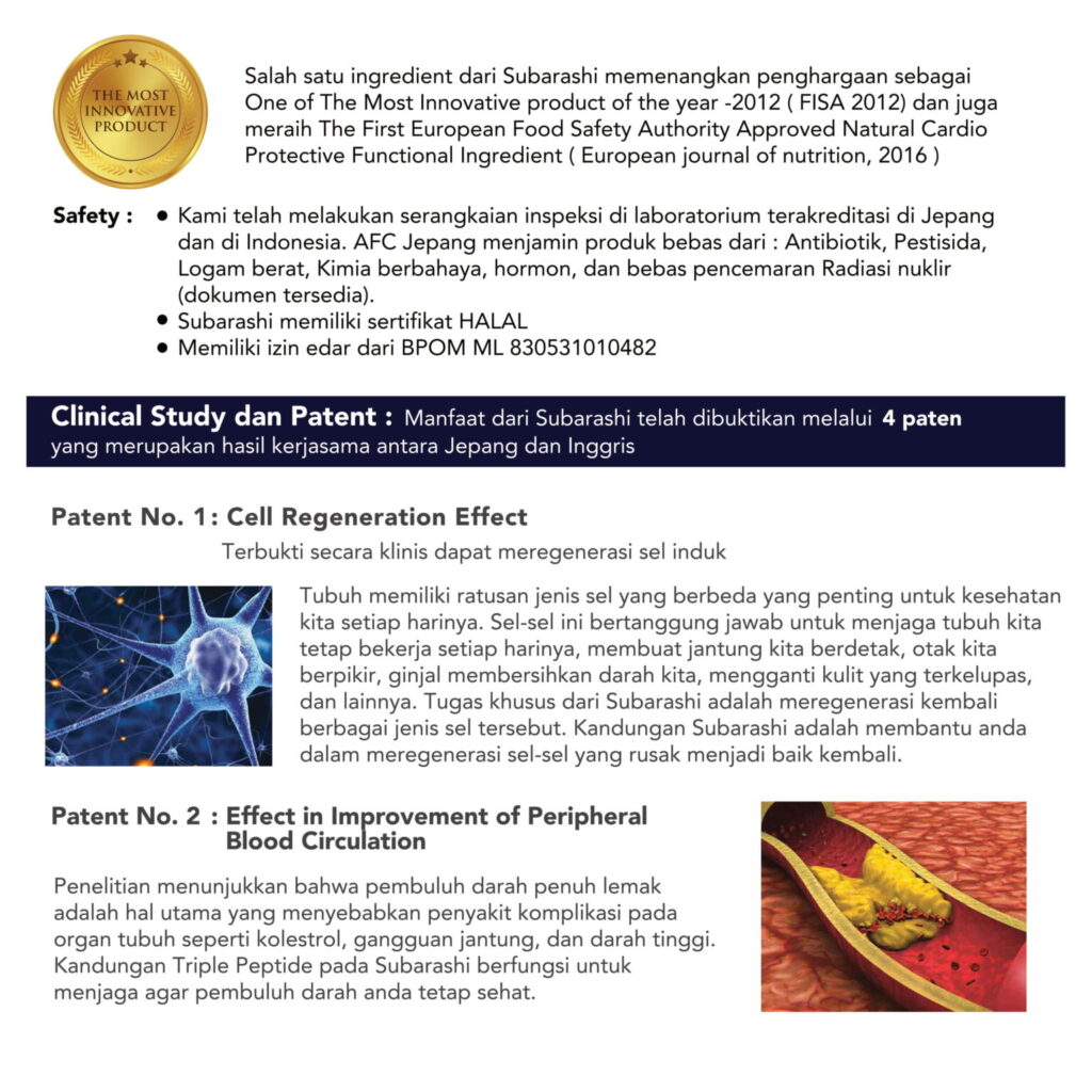 Diolah dan diproses dengan teknologi terkini Jepang sehingga menghasilkan peptida nano size 600 Dalton sehingga mudah diserap dan berfungsi maksimal dalam tubuh manusia.